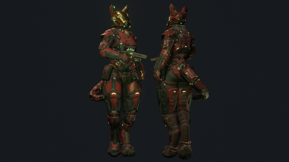 This outfit comes in two separate mesh renderers, one for the armor and one for the bodysuit, allowing you to easily choose between one or the other if desired.